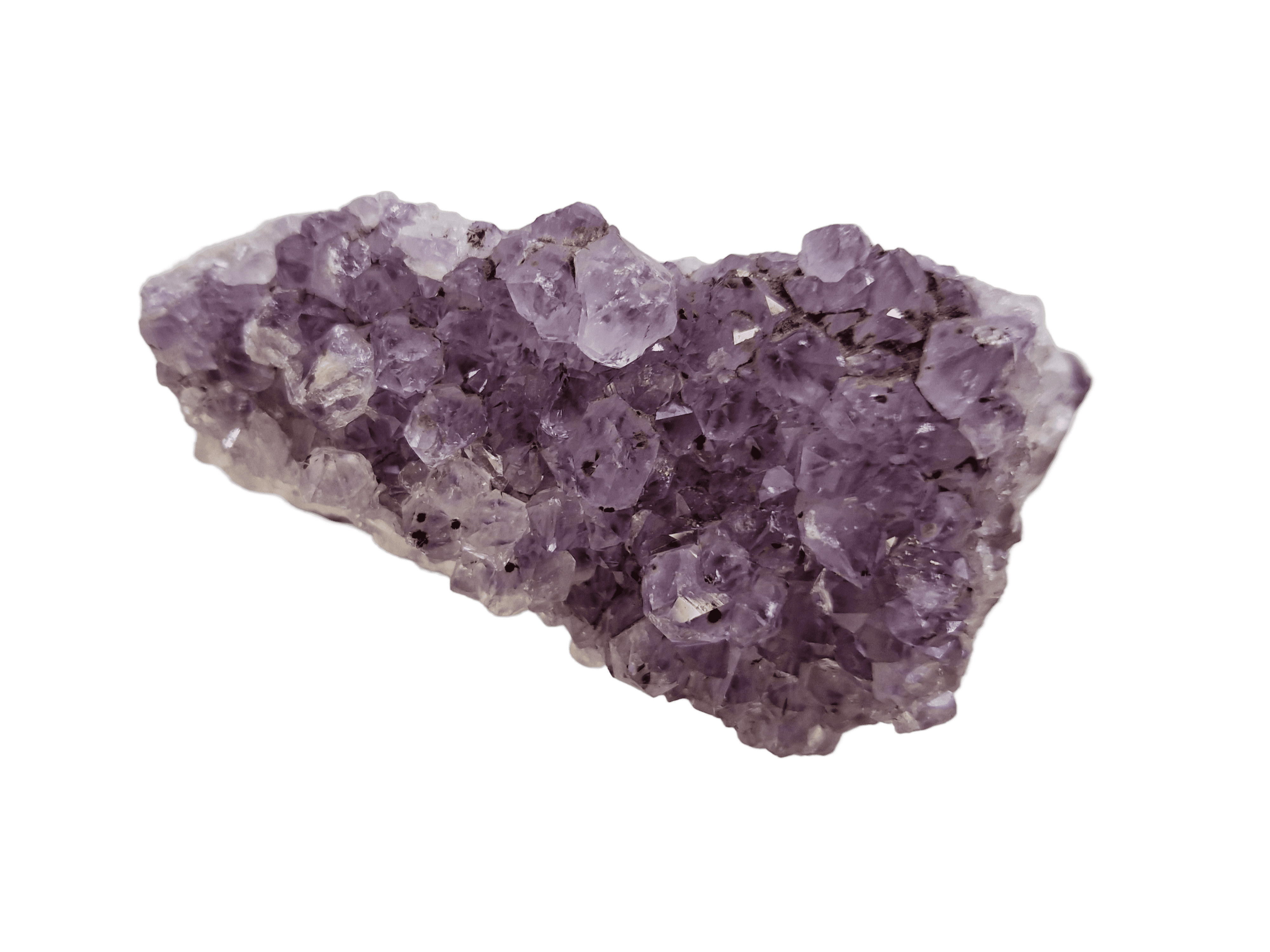 Clusterul de ametist se formează în cavitățile rocilor vulcanice, unde vaporii de apă bogăți în siliciu și fier se răcesc și cristalizează in structuri si dimensiuni diferite. Culoarea violet caracteristică a ametistului este dată de impuritățile de fier. Fiecare cluster este unic, cu o aranjare aleatorie a cristalelor in nuante de violet creând o piesă de artă naturală cu adevărat specială.